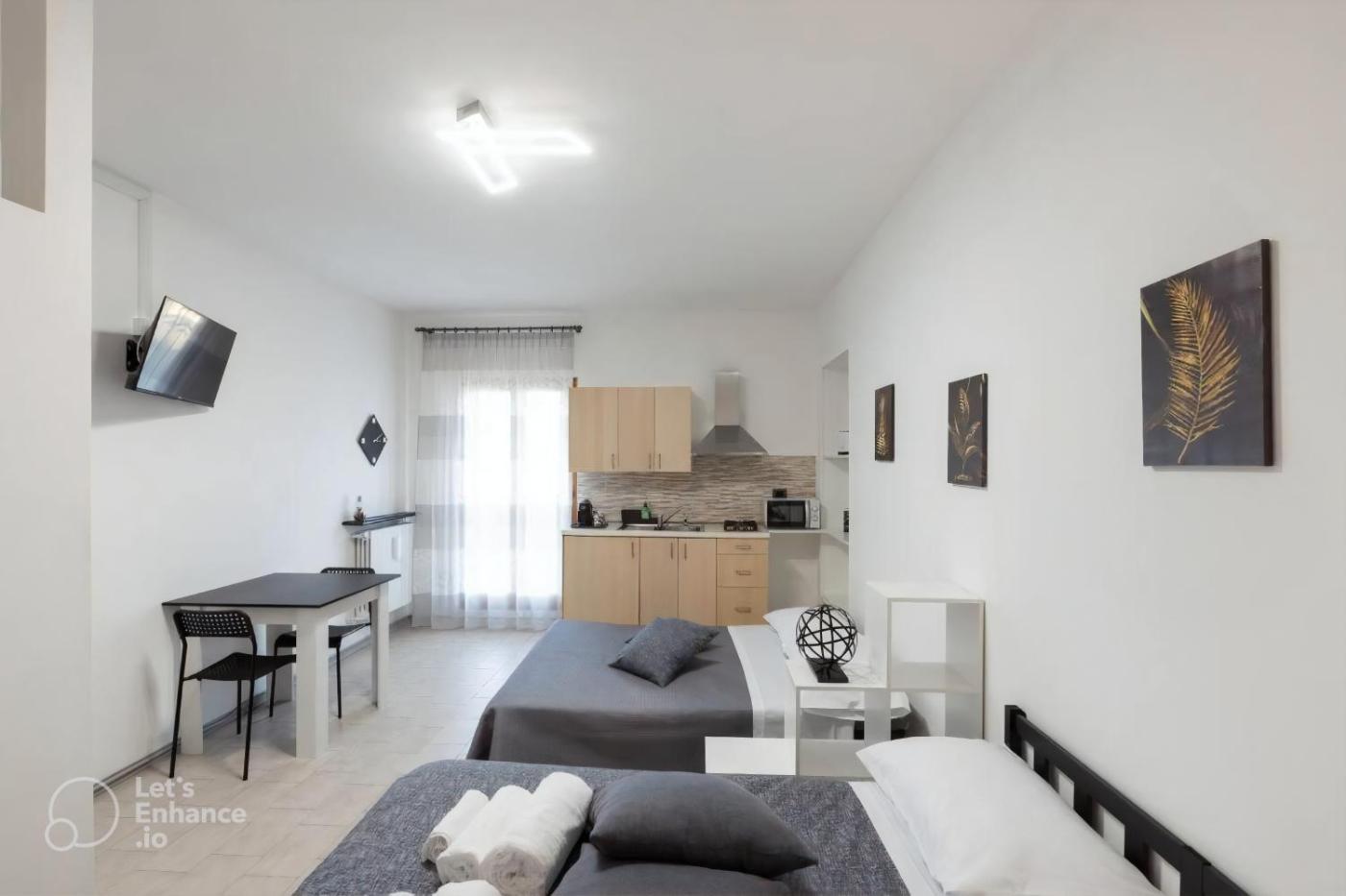 Appartamento con 1 Camera da Letto. This apartment comes with 1 living room, 1 separate bedroom and 1 bathroom with a shower and free toiletries. In the well-fitted kitchen, guests will find a stovetop, a refrigerator, kitchenware and a microwave. The apartment features a washing machine, a tea and coffee maker, a seating area, a flat-screen TV, as well as city views. The unit has 2 beds.