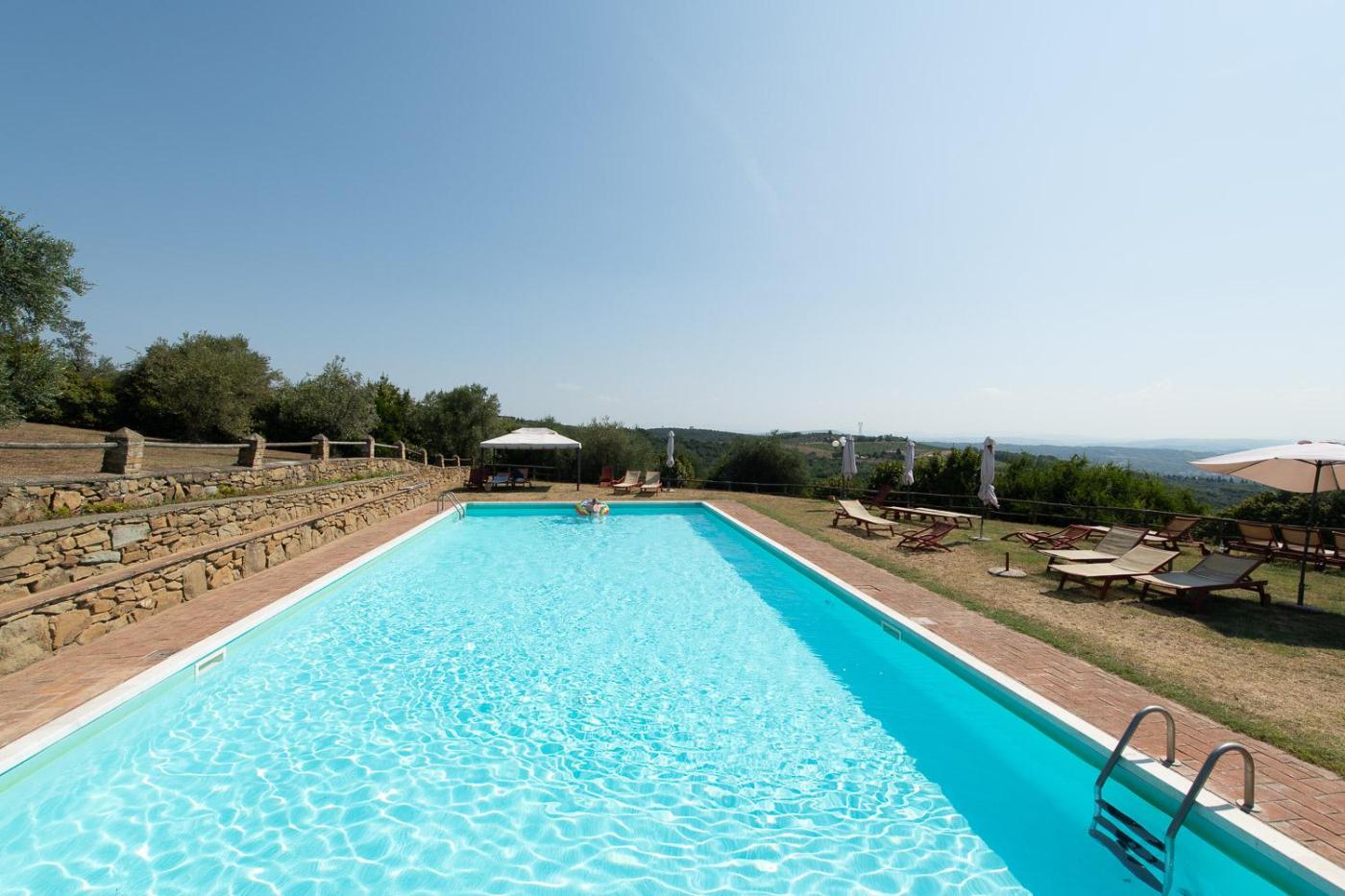 Appartamento con Vista Piscina (5 adulti). This apartment boasts a pool with a view and a fireplace. Featuring a private entrance, this apartment is comprised of 1 living room, 1 separate bedroom and 1 bathroom with a shower and a bidet. Guests will find a stovetop, a refrigerator, kitchenware and an oven in the kitchen. The apartment also has a barbecue. This apartment features a washing machine, flat-screen TV, garden views, as well as winechampagne for guests. The unit offers 4 beds. ;