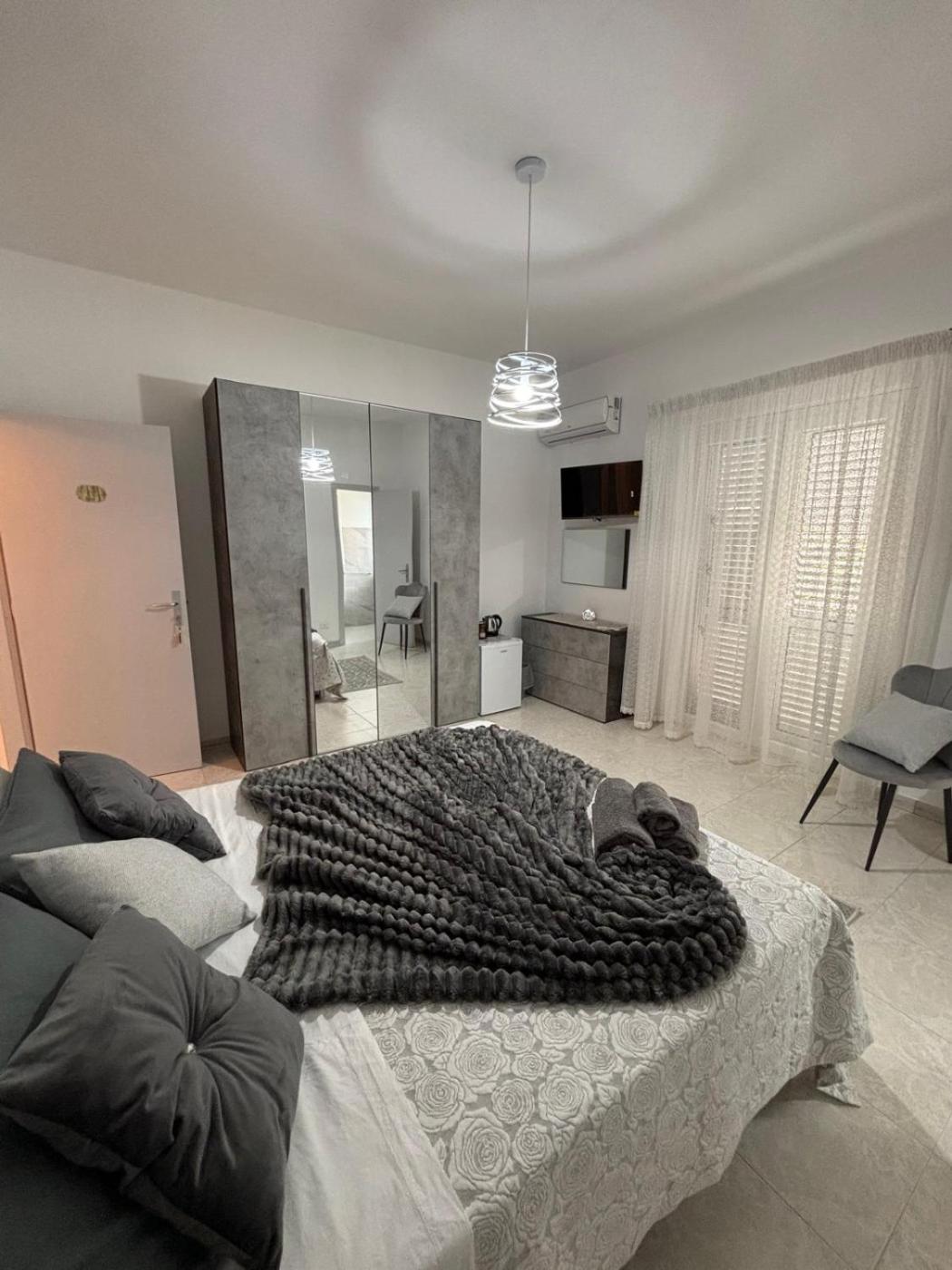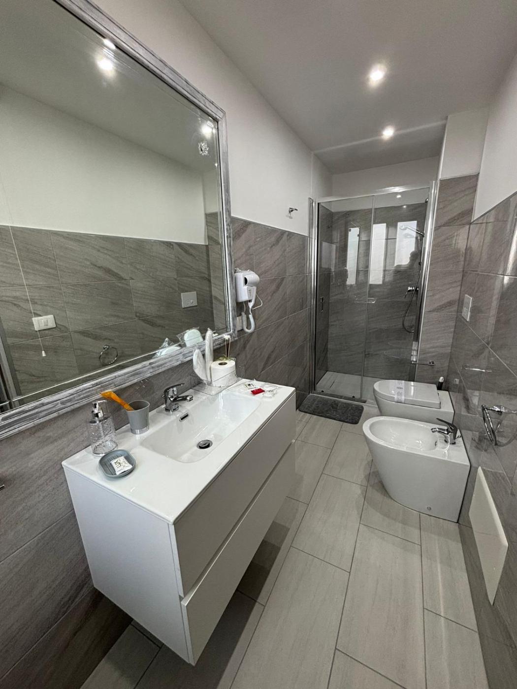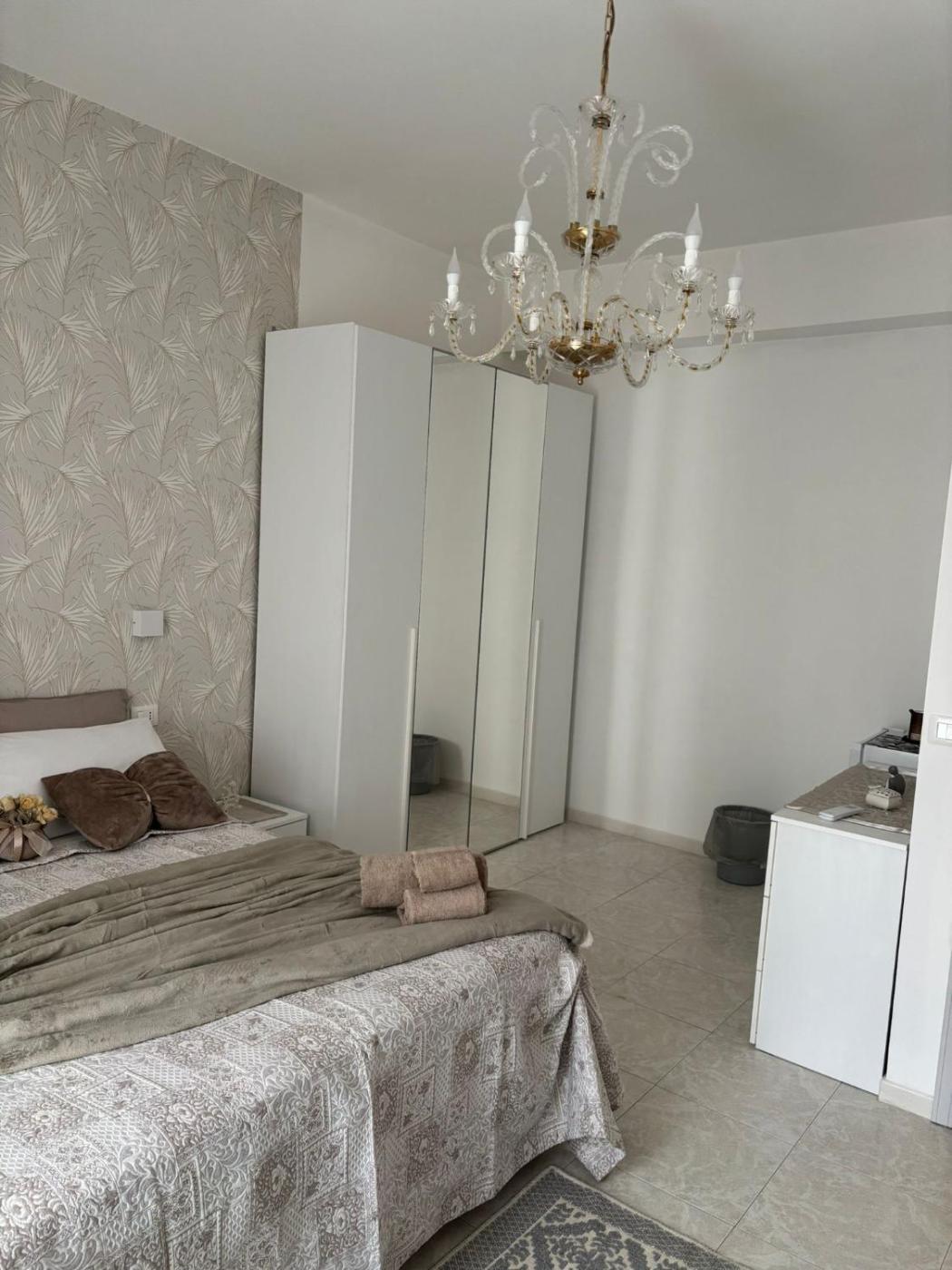 Camera Matrimoniale con Balcone (2 Adulti + 1 Bambino). Offering free toiletries and bathrobes, this double room includes a private bathroom with a walk-in shower, a bidet and a hairdryer. Guests can make meals in the kitchen that is fitted with a stovetop, a refrigerator, kitchenware and a microwave. This double room is air-conditioned and features a seating area with a flat-screen TV, a washing machine, a private entrance, a tea and coffee maker, as well as a dining area. ;
