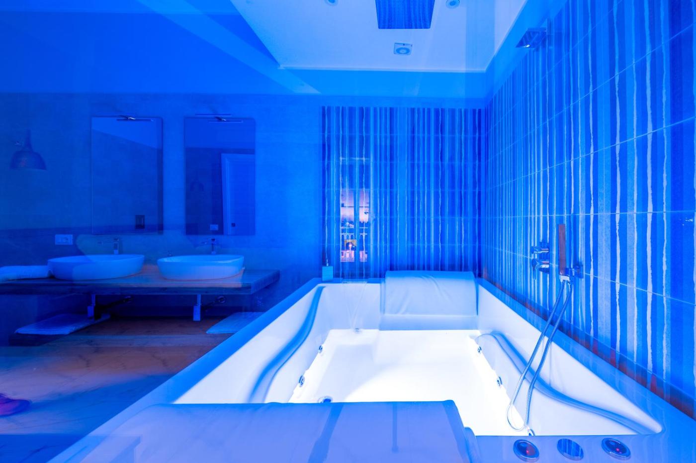 Camera King con Vasca Idromassaggio. Camera matrimoniale con vasca idromassaggio. La sistemazione è dotata di bagno privato condi cortesia, vasca, doccia e bidet. La spaziosa unità è climatizzata e include lavatrice, ingresso indipendente, pareti insonorizzate e TV a schermo piatto con servizi di streaming. L’alloggio offre 1 letto.