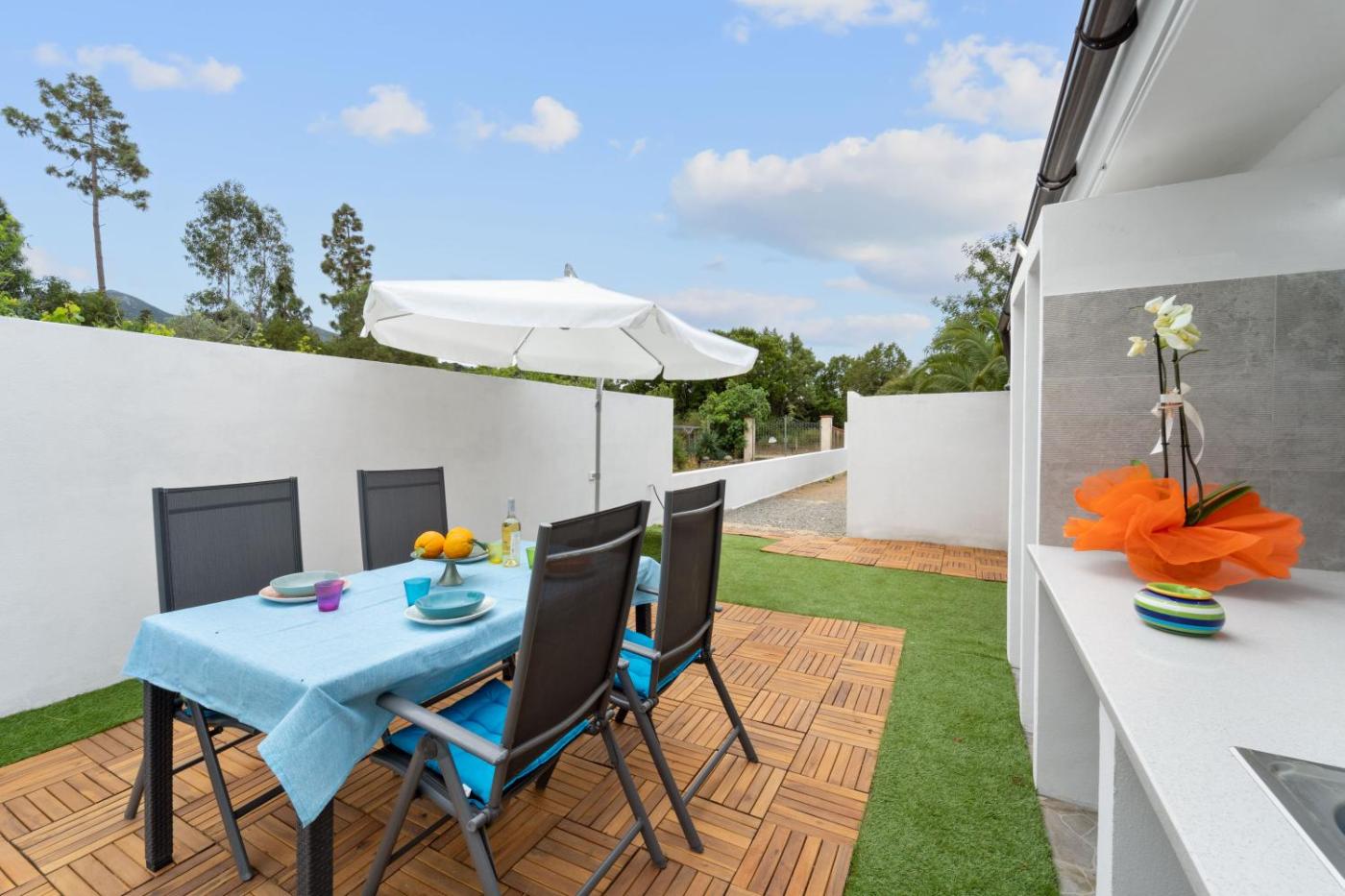Casa con 1 Camera da Letto. Featuring a private entrance, this air-conditioned holiday home consists of 1 living room, 1 separate bedroom and 1 bathroom with a shower and a hairdryer. Guests will find a dishwasher, kitchenware, an oven and a toaster in the well-fitted kitchen. The holiday home also offers a barbecue. The holiday home provides a washing machine, a coffee machine, a safe deposit box, a TV, as well as garden views. The unit offers 2 beds.