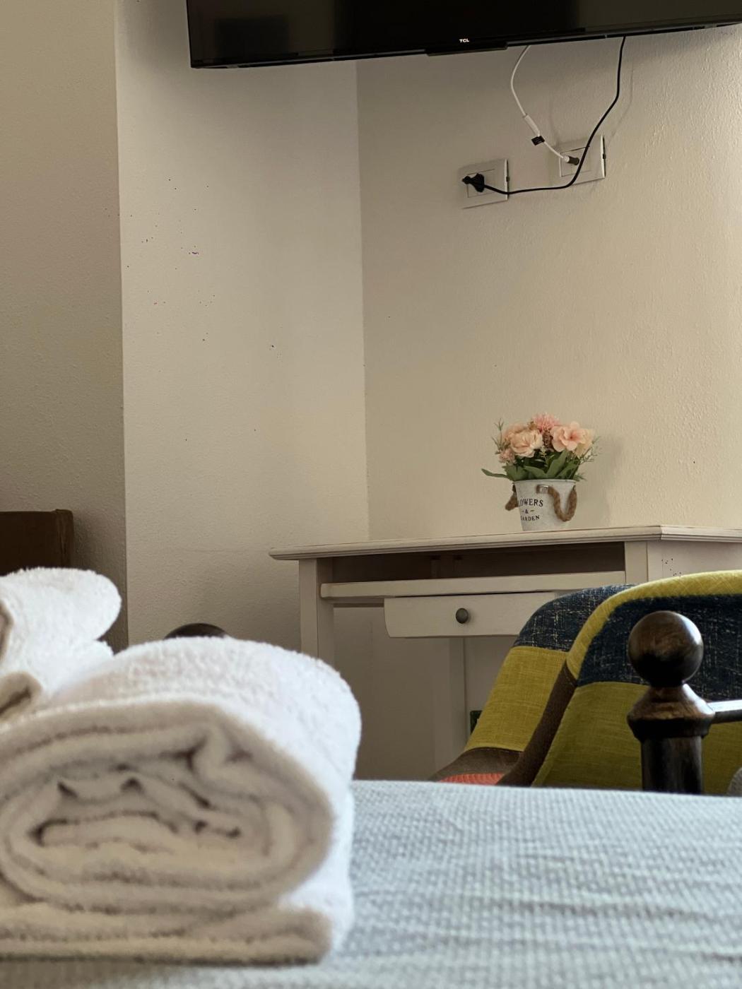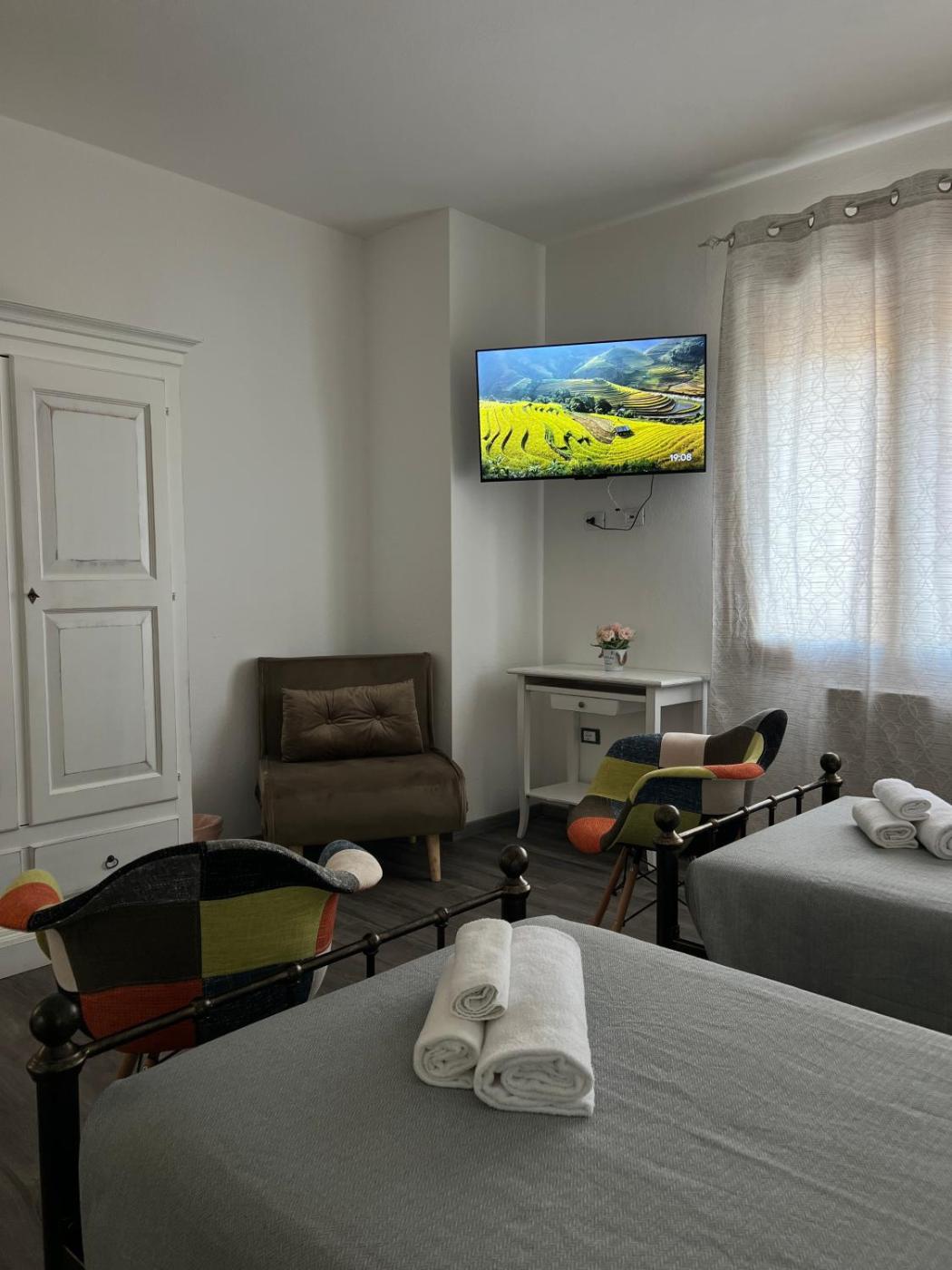 Camera Matrimoniale con Letto Supplementare. Featuring free toiletries, this double room includes a private bathroom with a shower, a bidet and a hairdryer. The air-conditioned double room features a flat-screen TV with streaming services, a tea and coffee maker, a wardrobe, parquet floors as well as city views. The unit has 2 beds. ;